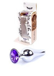 Srebrny Korek Analny z Fioletowym Kryształkiem Silver Butt Plug