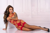Wyrafinowane Detale! Gładki pas u góry jest ozdobiony dwiema tasiemkami różowych kwiatków oraz biżuteryjnym serduszkiem. Pończochy typu kabaretka również są obszyte paskiem tiulu z różowymi kwiatkami, co tworzy spójną i niezwykle zmysłową całość.